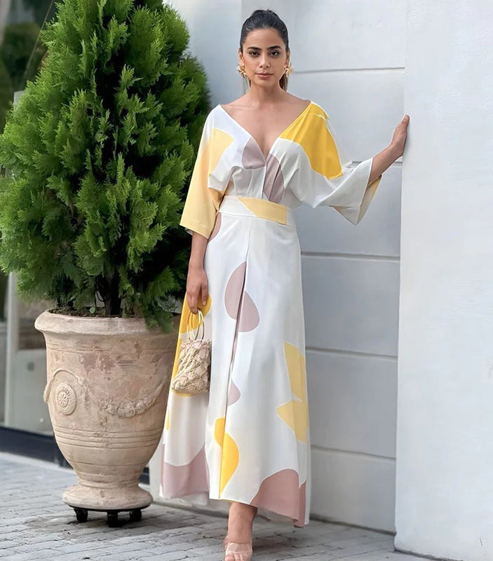 đ2024 Robe taille haute imprimĂ©e Ă col en V pour femme, nouvelle modeăLivraison gratuiteă