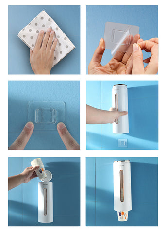 Pas de perforation : ce sélecteur de gobelets est équipé d'un patch, pas besoin de percer des trous dans le mur.