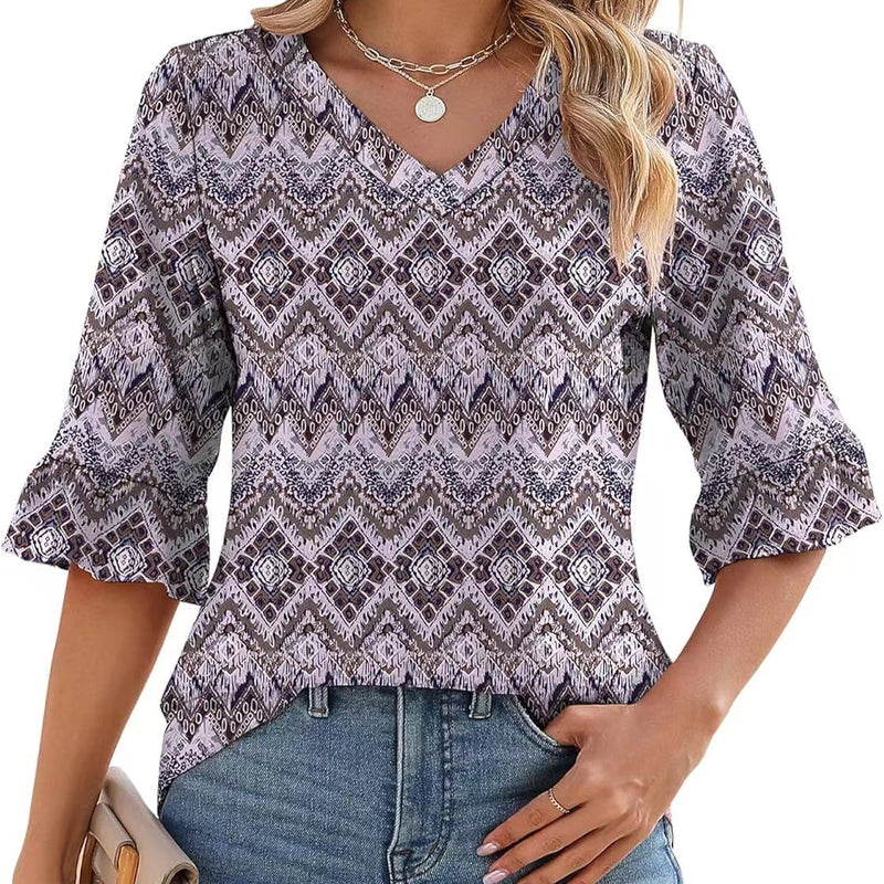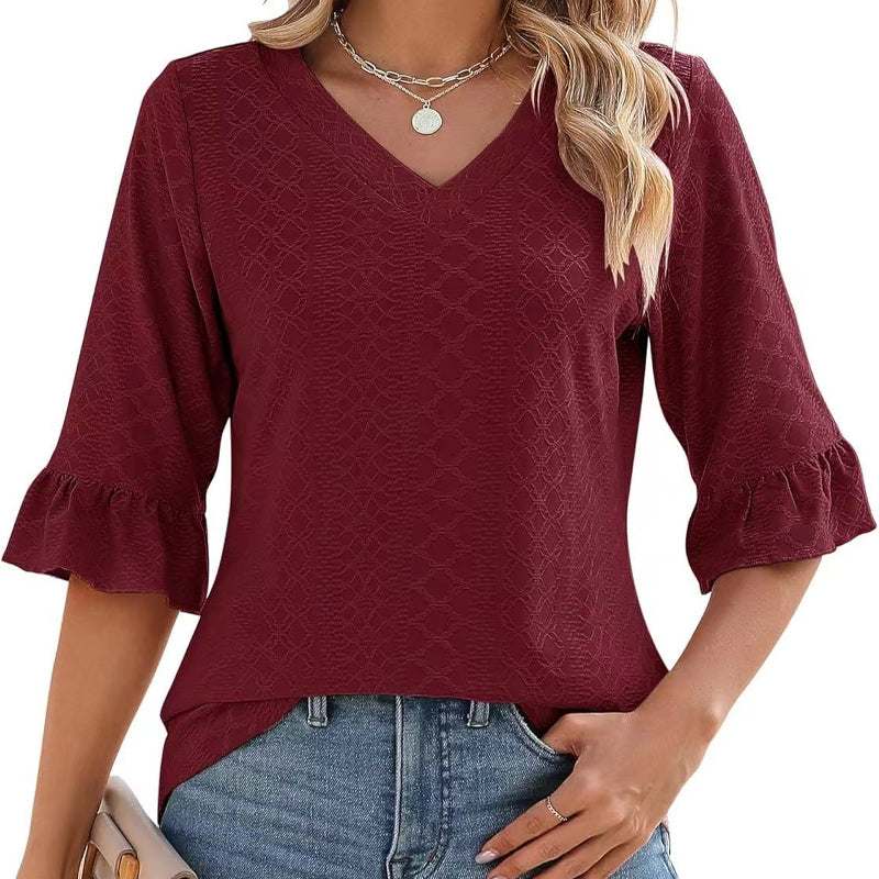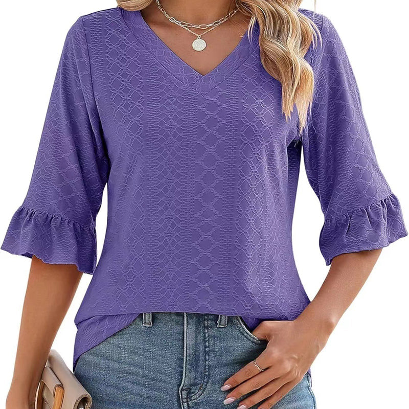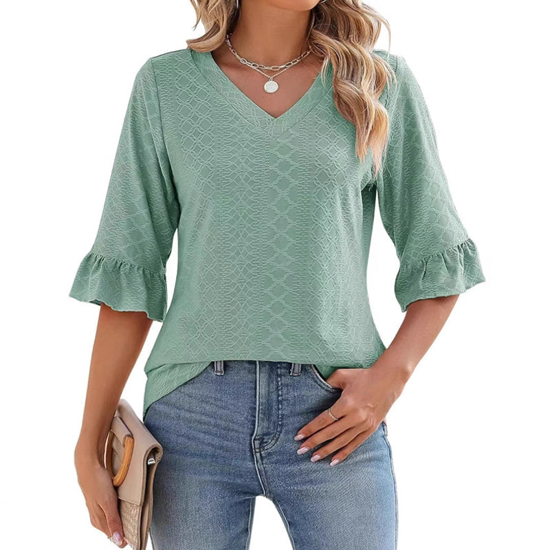 Le paquet comprend : 1 * Tops élégants à manches volantées et col en V pour femmes