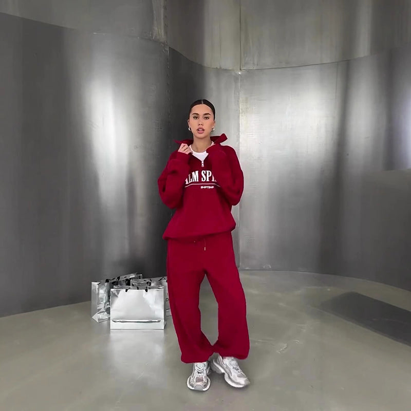 LIGNES PROPRES : Le haut est doté d'un col montant et d'une demi-fermeture éclair, offrant un look sportif à la fois élégant et pratique. Le pantalon est doté d'un cordon de serrage à la taille et de poignets aux chevilles, ce qui permet un ajustement personnalisé et un confort accru.