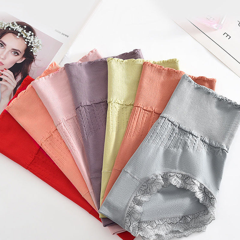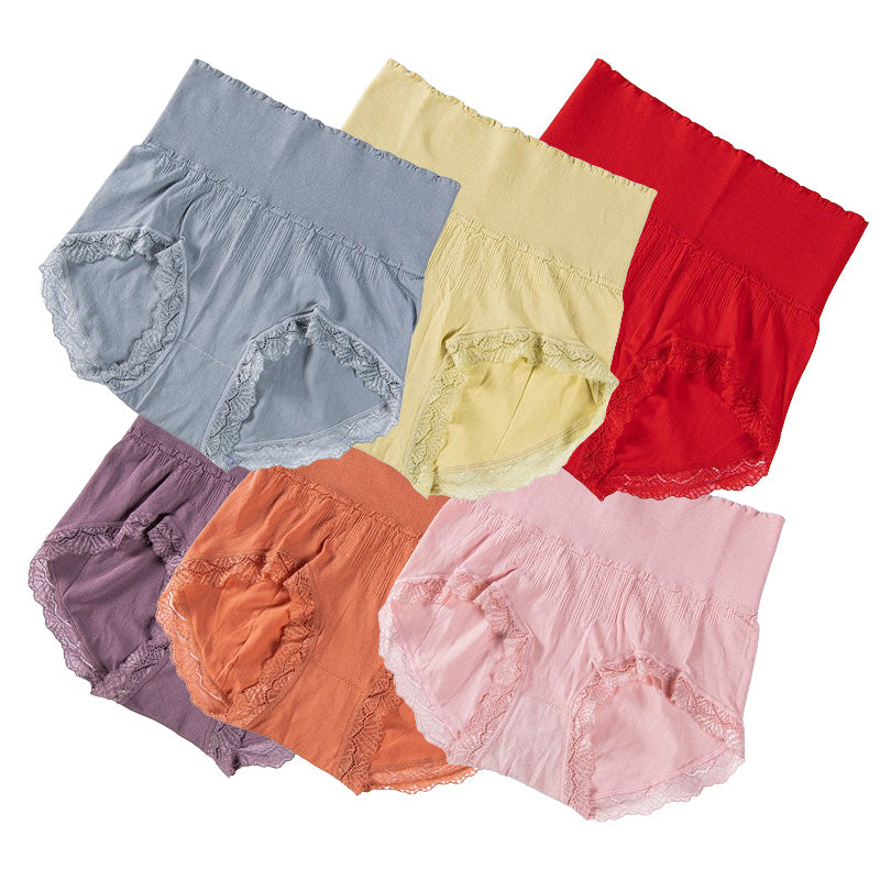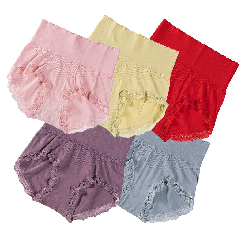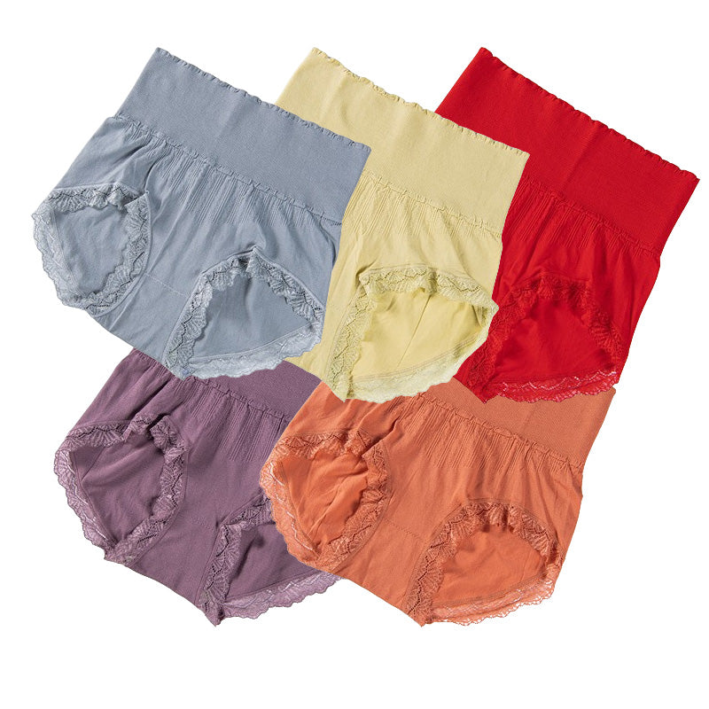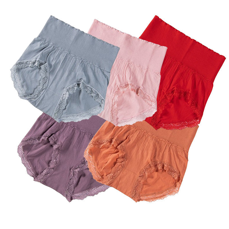 1/5/6 pcs * Sous-vêtements Extensibles Antibactérien à Taille Haute en Dentelle avec Contrôle de l'Abdomen pour Femmes