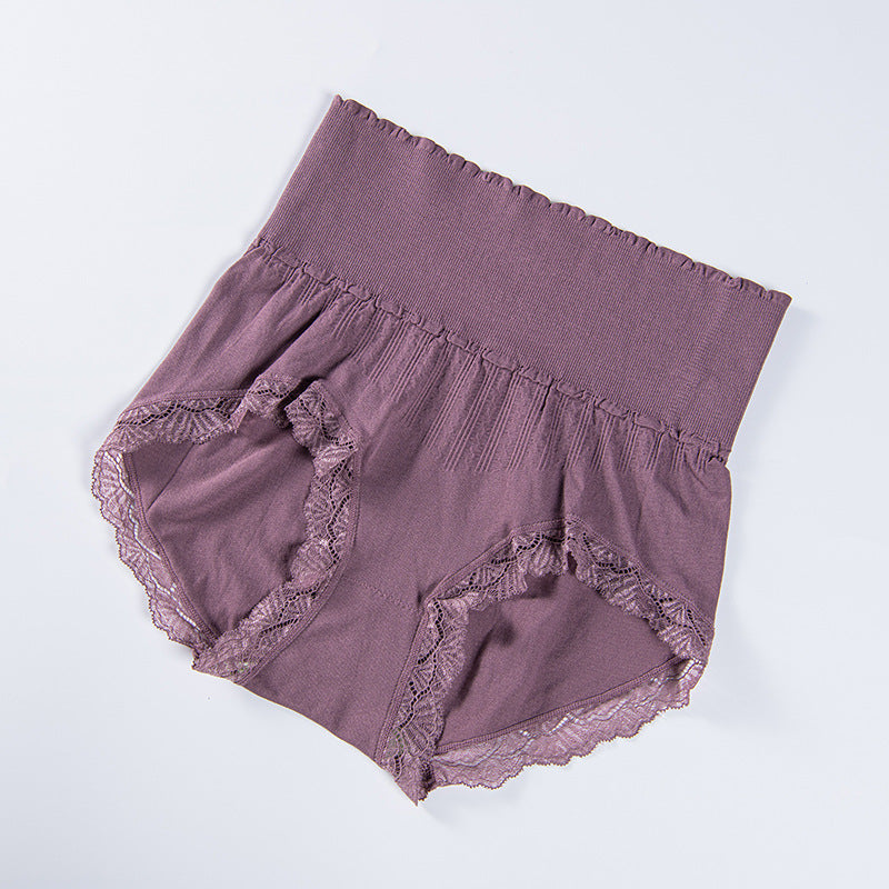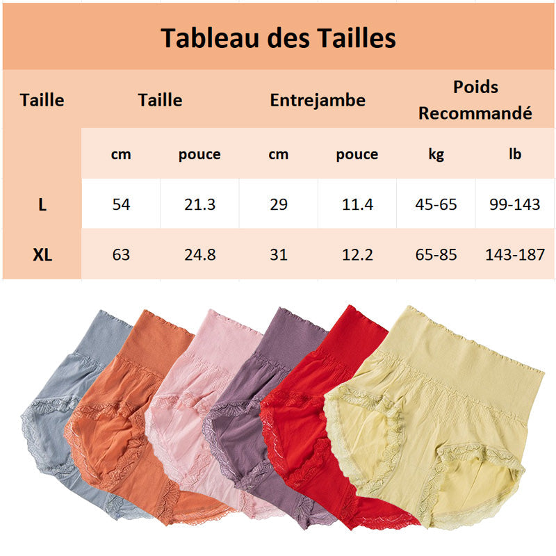 Sous-vêtements Extensibles Antibactérien à Taille Haute en Dentelle avec Contrôle de l'Abdomen