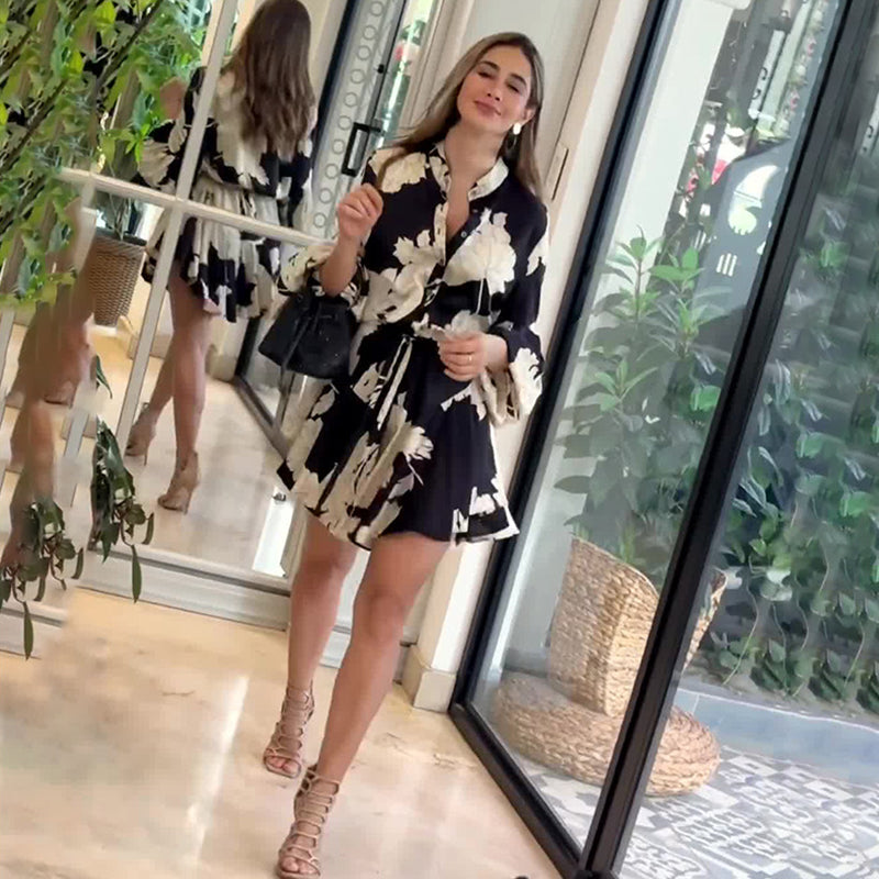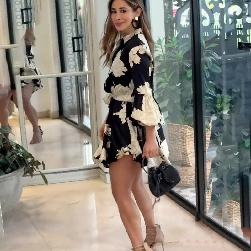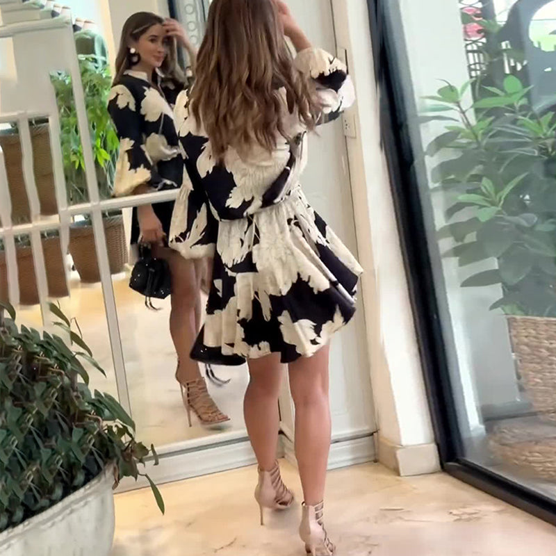 👗Robe vintage imprimée avec taille ajustée et manches lanternes👠