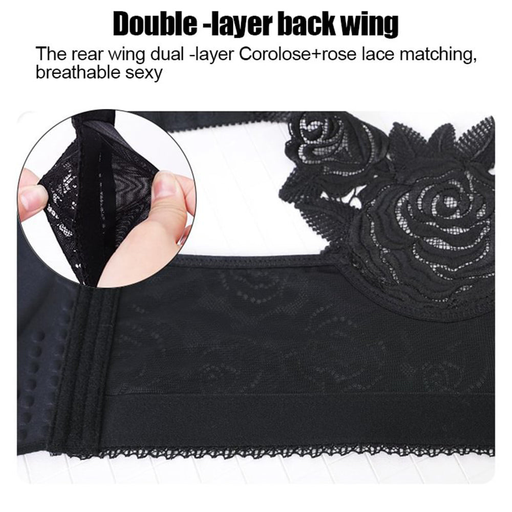 🔥Vente chaude 🔥Soutien-gorge sexy sans fil avec fermeture avant brodée rose