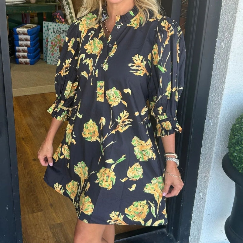 đ„Robe fleurie Ă la mode avec manches bouffantes et ceinture