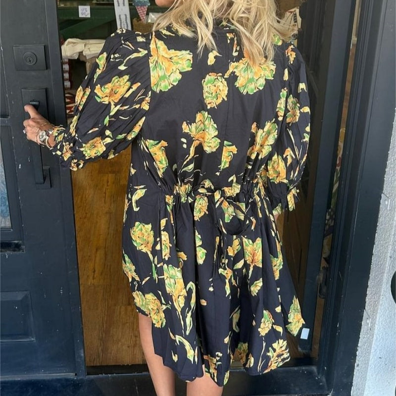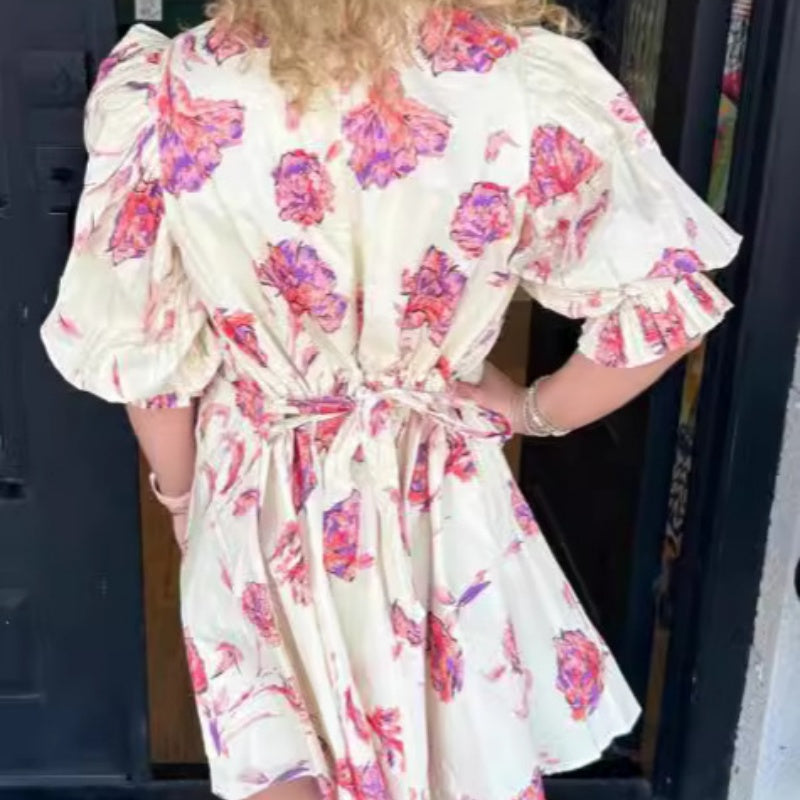 Le forfait comprend: 1 * Robe Ă motif floral Ă la mode avec manches bouffantes et ceinture