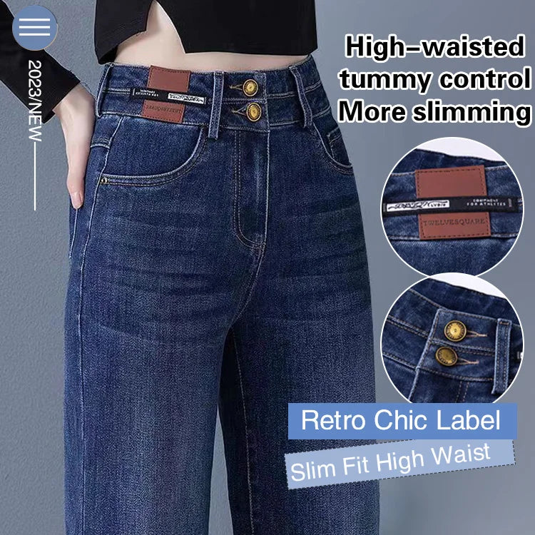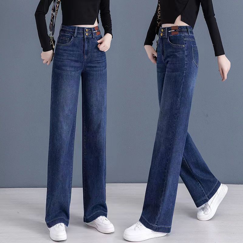Jean droit à jambe large, taille haute et double boutonnage