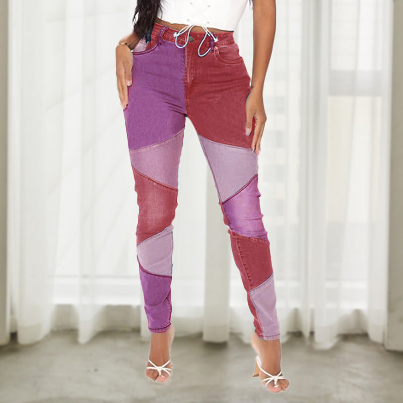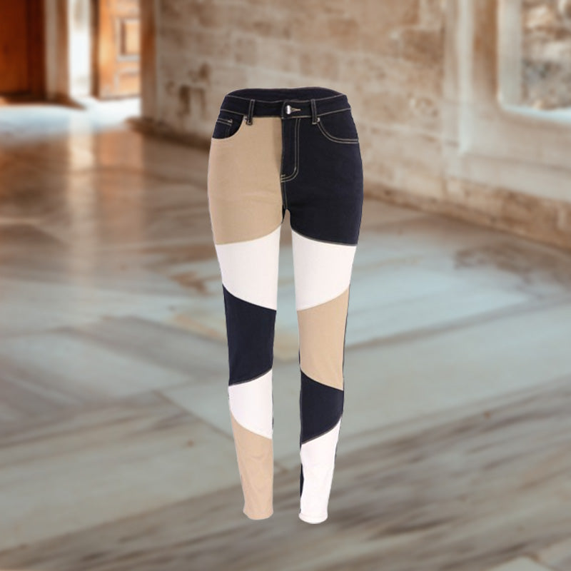 Rehaussez votre collection de denim avec nos Jeans Confortables pour Femmes avec Patchwork Bicolore à La Mode. Conçus à la fois pour le style et le confort, ces jeans présentent un design chic en patchwork de deux couleurs contrastantes. Vivez le mélange parfait de mode et de douillet avec ces jeans tendance.