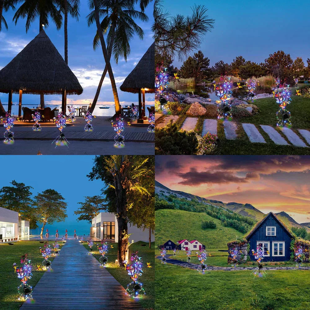 Large éventail d'applications : Les lampes de jardin à papillons conviennent aux jardins, pelouses, allées, terrasses et autres espaces. Elles diffusent une lumière merveilleuse et créent une atmosphère romantique et festive.