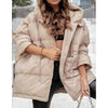 ❄️Spécial hiver❄️ Veste à capuche en coton de couleur unie pour femme