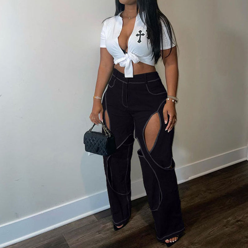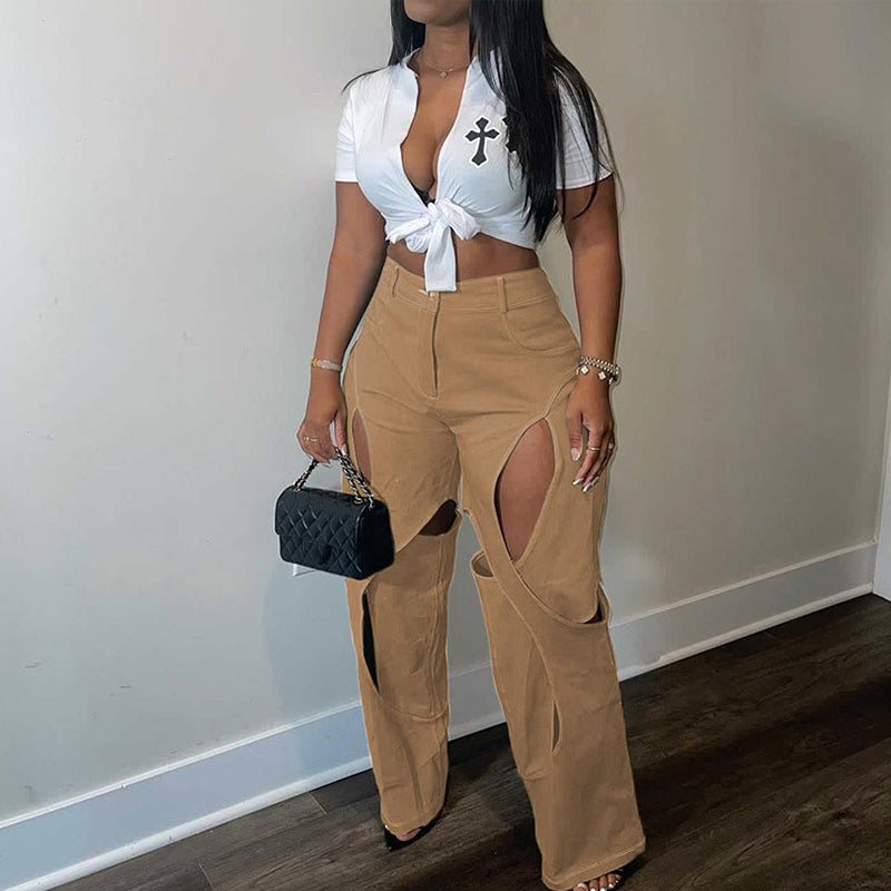 Élevez votre jeu de mode avec notre Pantalon à Jambes Larges Irrégulières et Creuses pour Femmes, une pièce statement qui combine parfaitement un design audacieux avec le confort. Ces pantalons sont conçus pour la femme moderne qui apprécie un style unique et privilégie le confort. Les détails découpés irréguliers ajoutent une touche sophistiquée et edgy, faisant de ces pantalons larges un choix polyvalent pour diverses occasions.