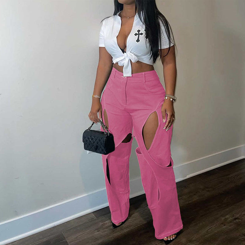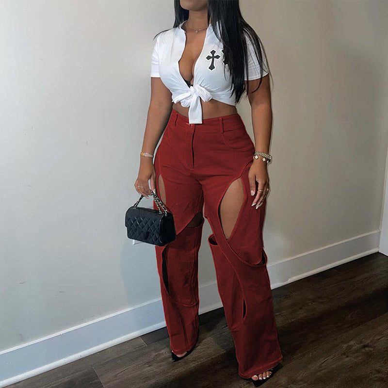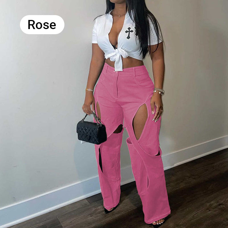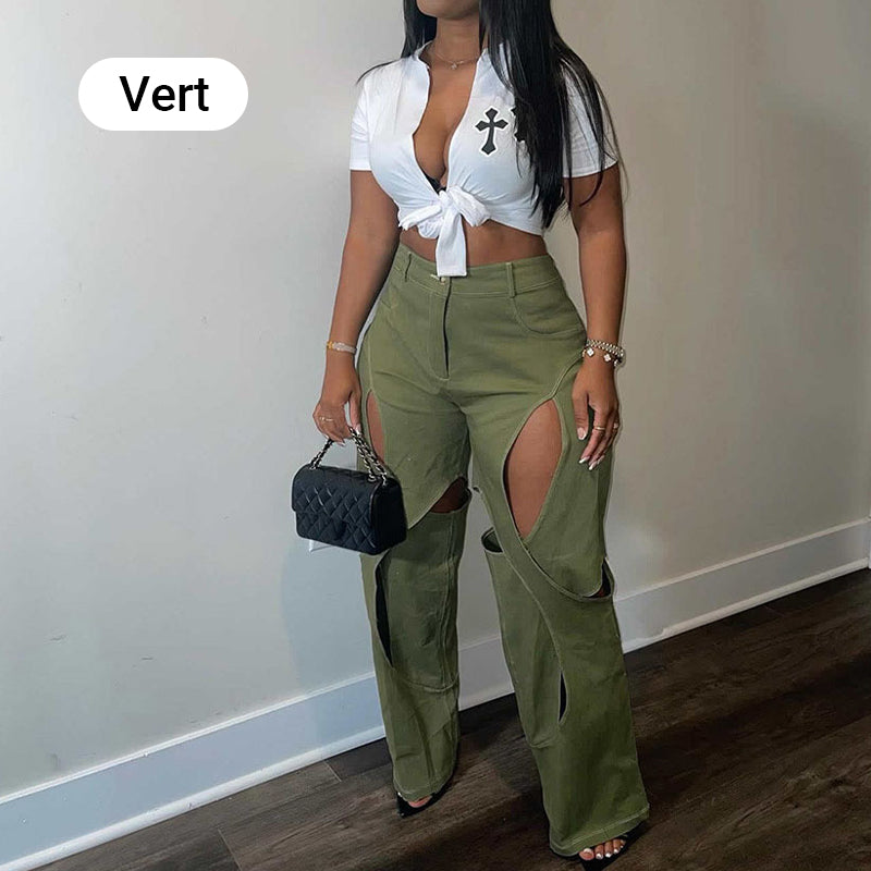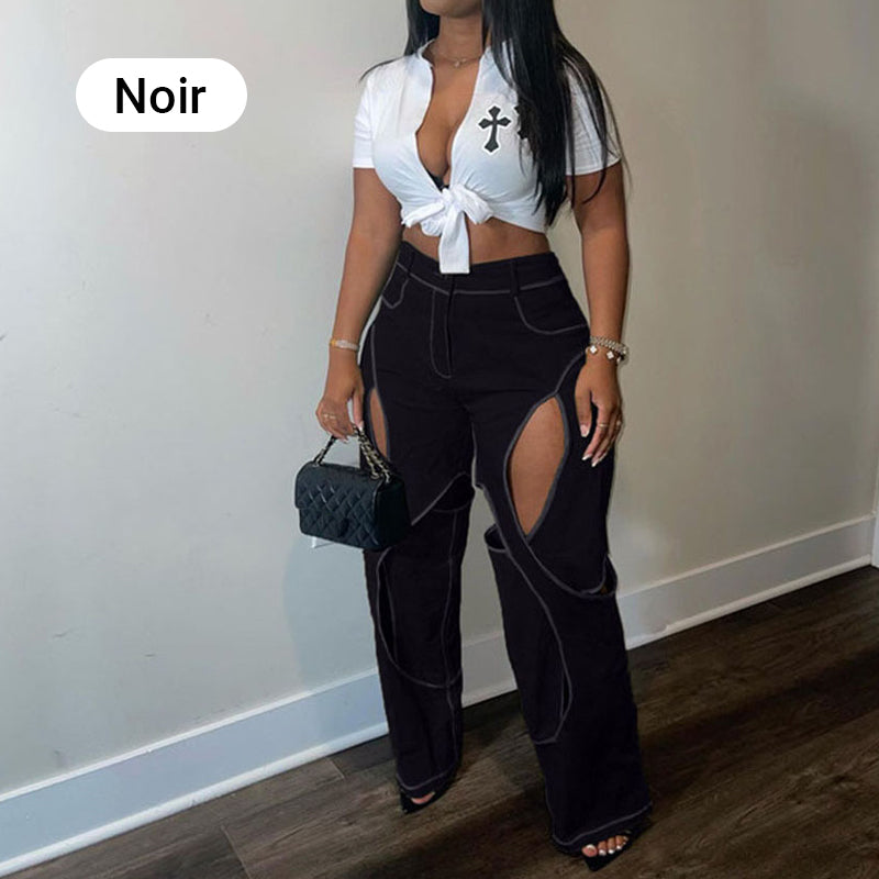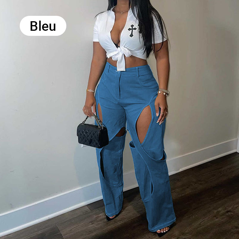 1 * Pantalon à Jambes Larges Irrégulières et Creuses pour Femmes
