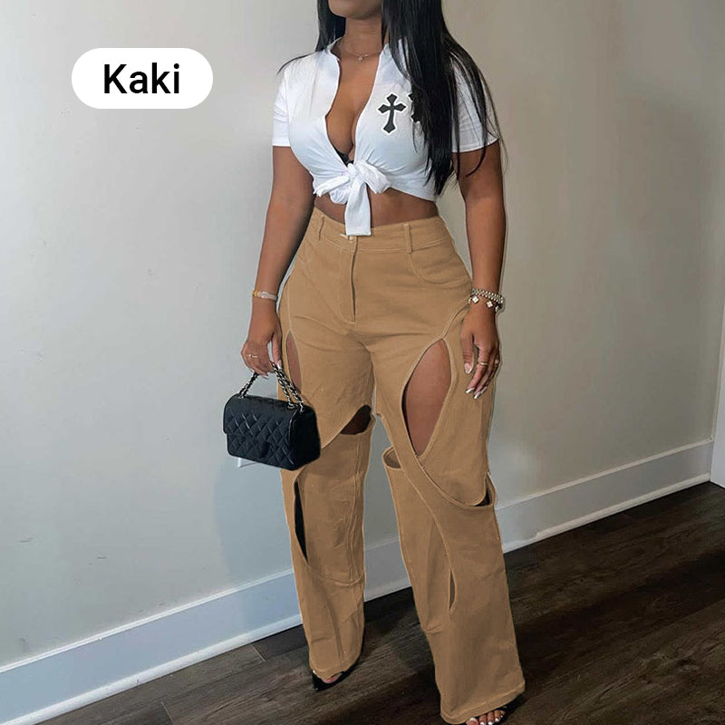 🔥Livraison gratuite🔥Pantalon à Jambes Larges Irrégulières et Creuses pour Femmes