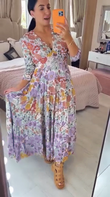 💃L'imprimé époustouflant et le design flatteur du col en V créent un look bohème à la fois chic et décontracté