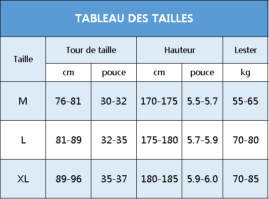Tableau des tailles