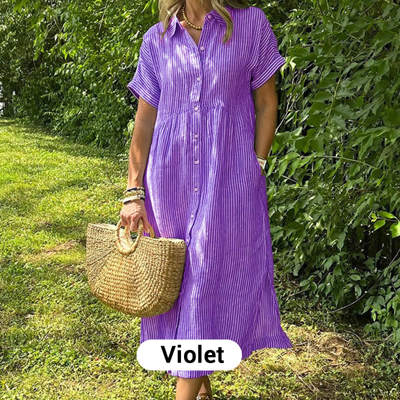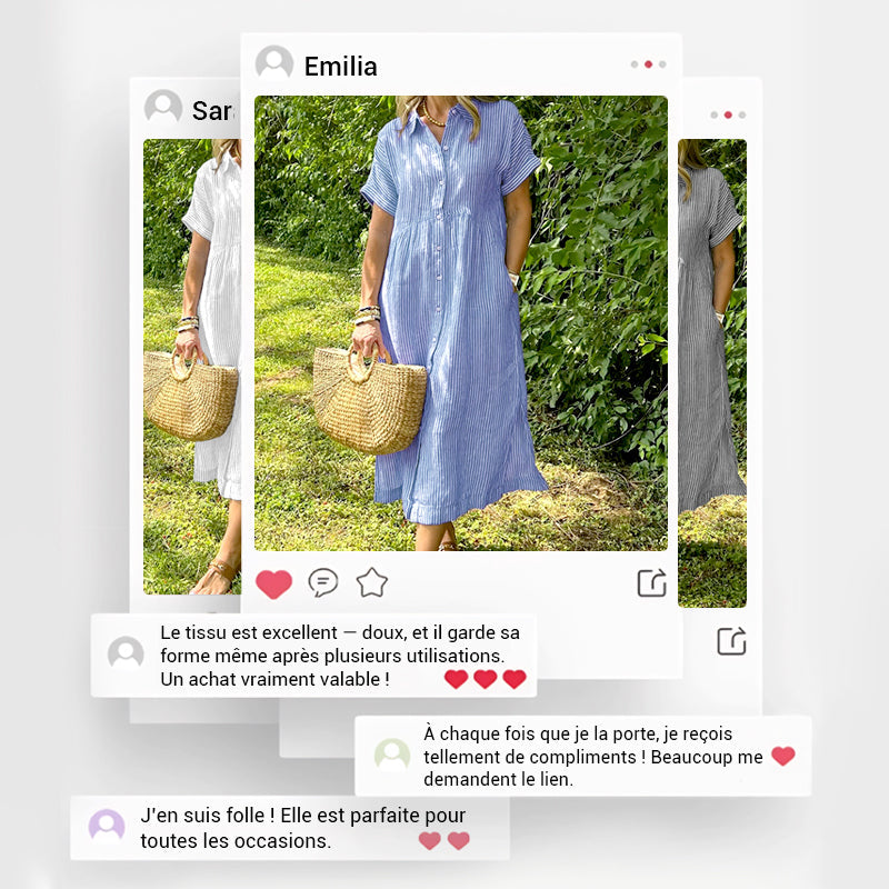 ⏳Réductions temporaires Super-Économies ⏳👗Robe chemisier long rayé col V pour femme