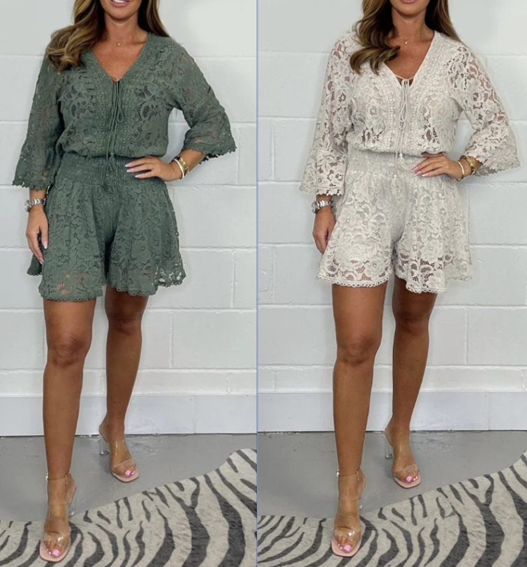 ⏰offre limitée dans le temps🔥Combinaison courte décontractée à col V en dentelle