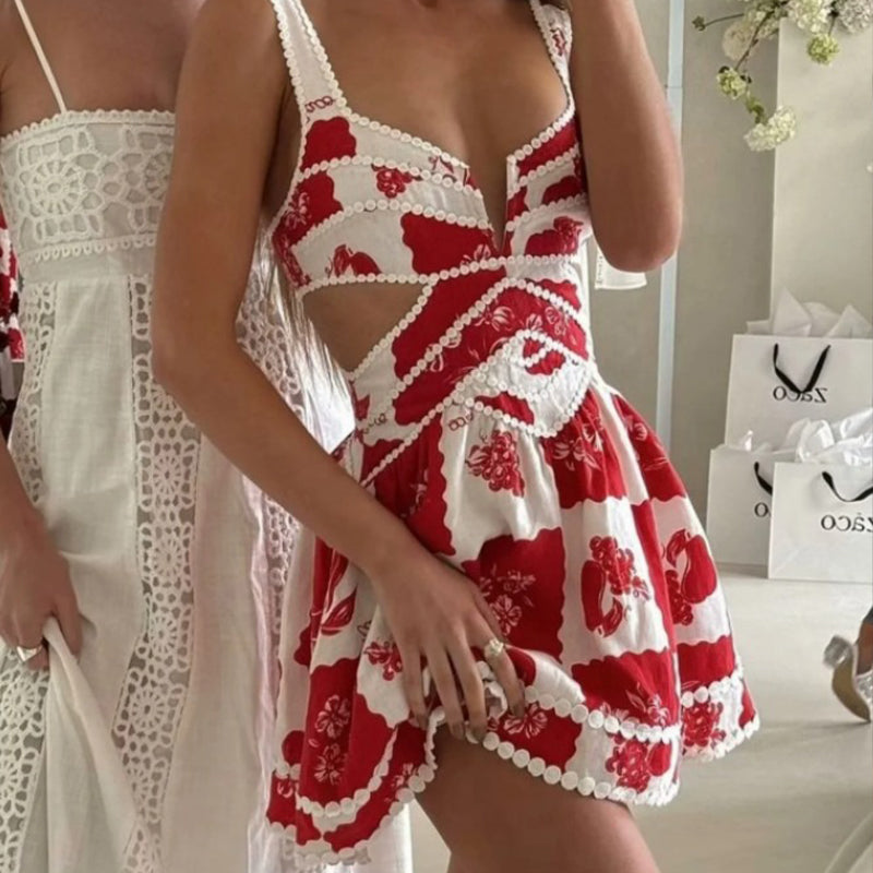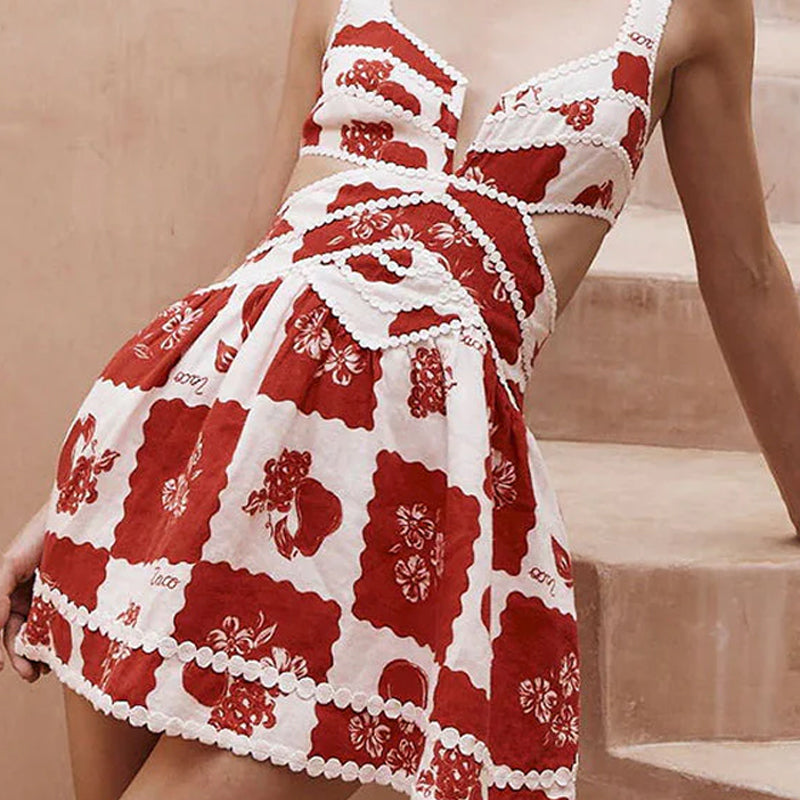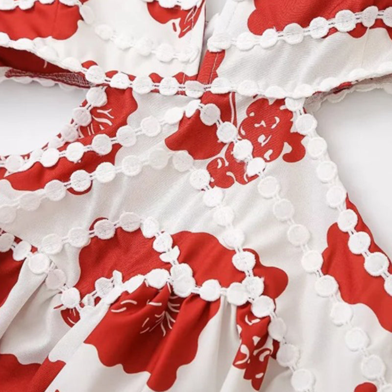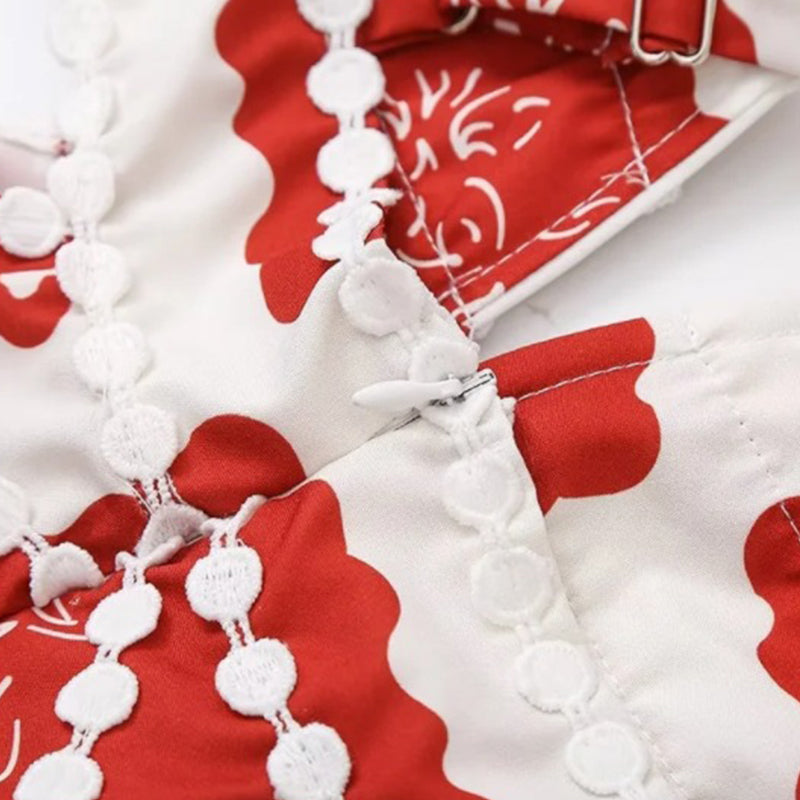 IMPRIMÉ FLORAL CHIC - L'imprimé rouge et blanc vibrant offre une ambiance fraîche et estivale, vous assurant de vous démarquer lors de tout rassemblement ou événement.