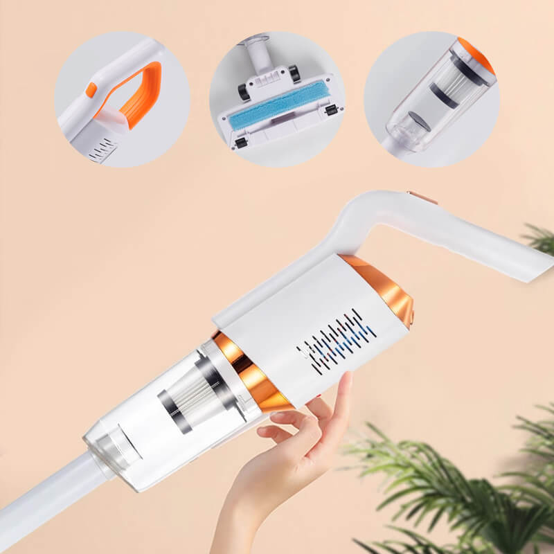 Grâce à sa conception autoportante, vous pouvez placer cet aspirateur presque partout. Pesant environ 1,4 kg, il est idéal pour un nettoyage à une main. Ses nombreux accessoires, dont une brosse à poussière et un long suceur plat, permettent d'utiliser cet aspirateur sans fil de six manières différentes pour répondre à tous vos besoins de nettoyage quotidiens et vous garantir une expérience d'entretien optimale.