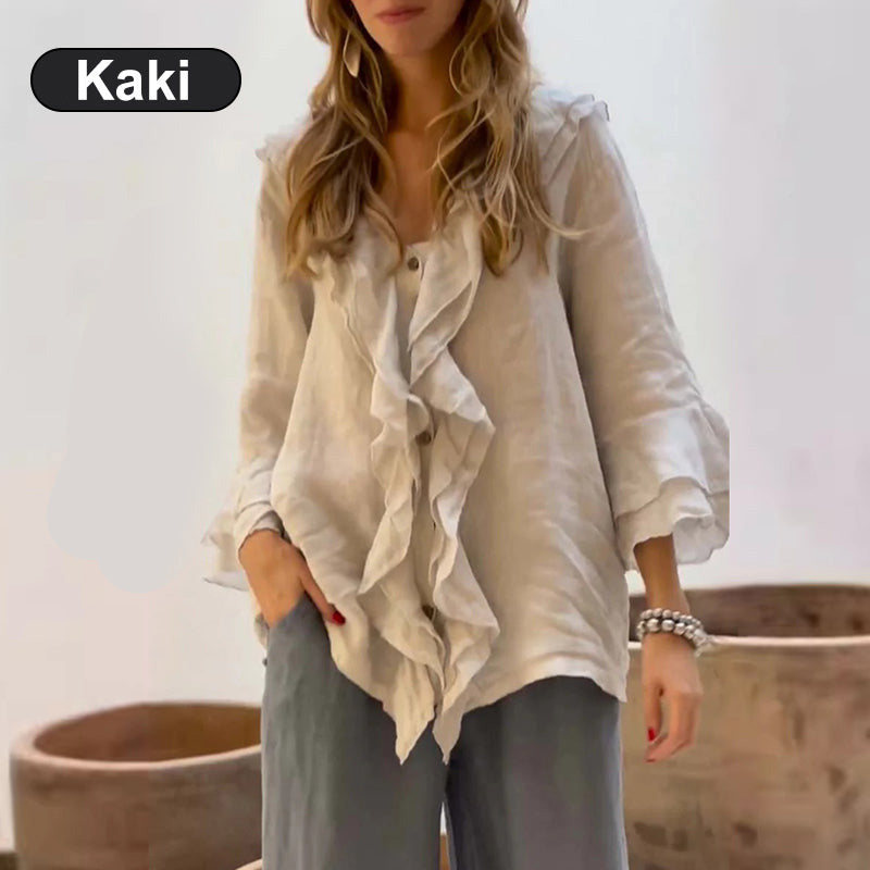 💞Vente chaude🔥Haut décontracté élégant à volants pour femmes, col en v