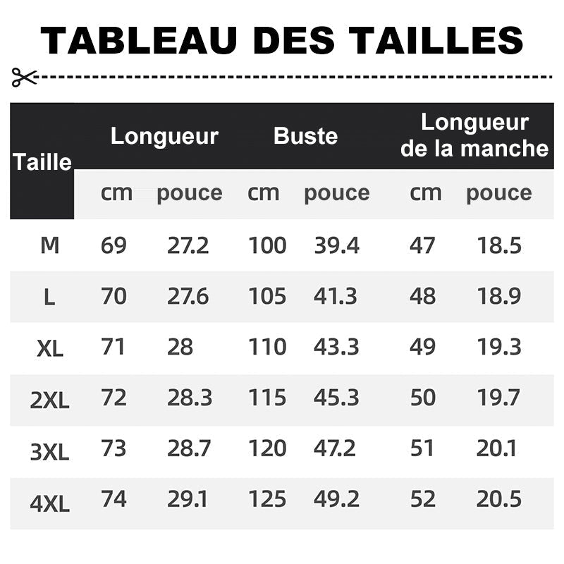 Taille : M, L, XL, 2XL, 3XL, 4XL