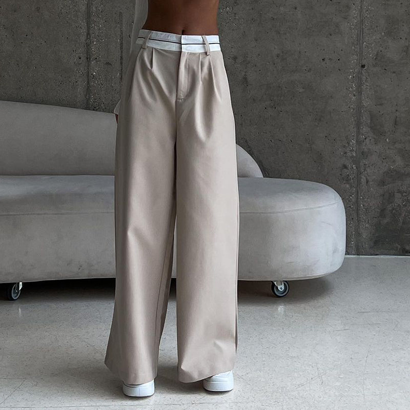 DESIGN MINIMALISTE MODERNE : Combinant une silhouette taille haute avec une jambe large et des détails plissés pour un look épuré et moderne, ce pantalon offre à la fois confort et style élégant adapté aux occasions décontractées ou semi-formelles.