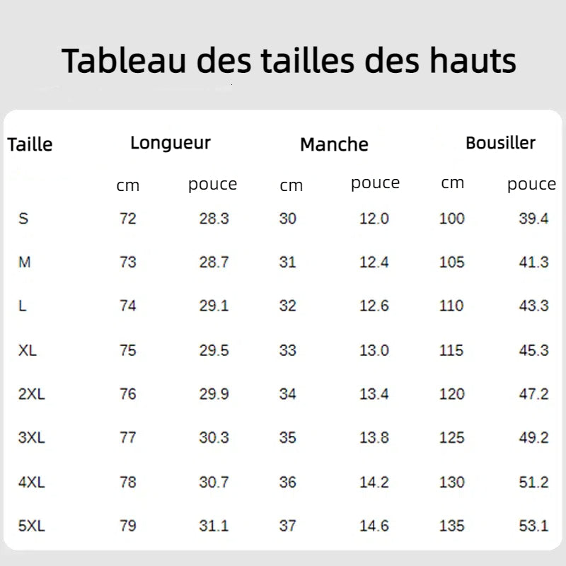 Tailles disponibles : M, L, XL, 2XL, 3XL, 4XL