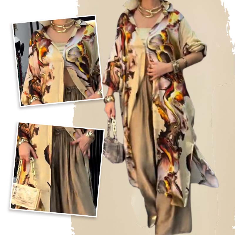 Ensemble deux pièces imprimé stylisé - Top long et pantalon large